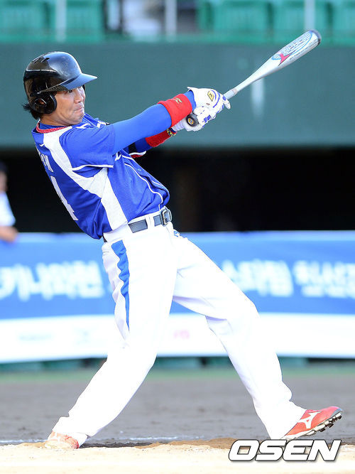 4회말, 니베아 맨 올스타팀 구병무가 외야플라이를 때리고 있다./ouxou@osen.co.kr