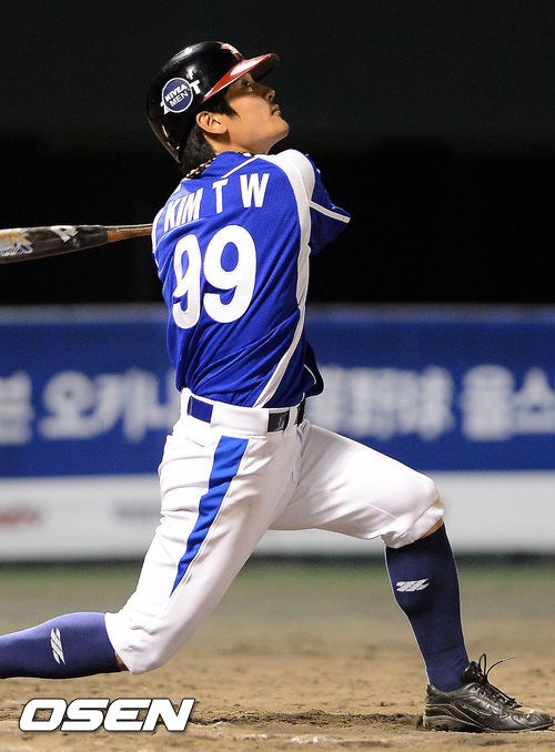 9회말, 니베아 맨 올스타팀 차재광이 안타를 치고 타구를 지켜보고 있다 . /ouxou@osen.co.kr