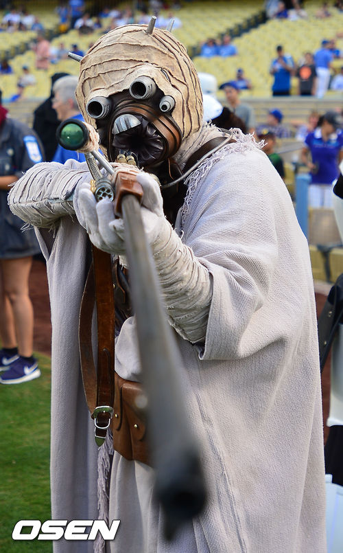 31일 (이하 한국시간) 미국 캘리포니아주 로스앤젤레스 다저스타디움에서 2013 메이저리그 LA 다저스와 샌디에이고 파드리스 경기에 앞서서 스타워즈 코스프레 행사가 열리고 있다.