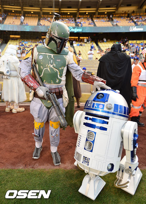 31일 (이하 한국시간) 미국 캘리포니아주 로스앤젤레스 다저스타디움에서 2013 메이저리그 LA 다저스와 샌디에이고 파드리스 경기에 앞서서 스타워즈 코스프레 행사가 열리고 있다.
