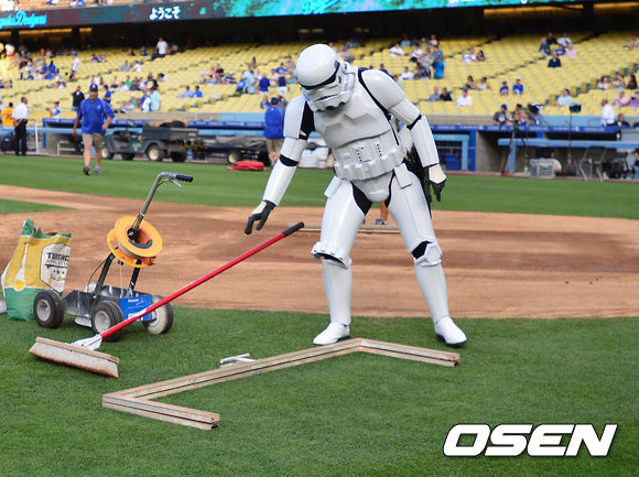 31일 (이하 한국시간) 미국 캘리포니아주 로스앤젤레스 다저스타디움에서 2013 메이저리그 LA 다저스와 샌디에이고 파드리스 경기에 앞서서 스타워즈 코스프레 행사가 열리고 있다.