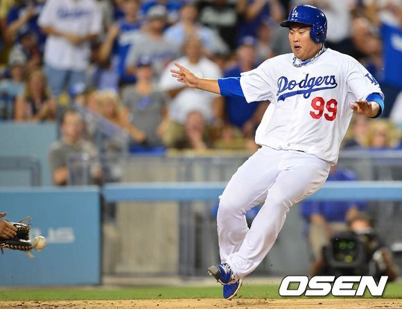 그 뿐만 아니었다. 야시엘 푸이그의 유격수 키를 넘는 좌전 안타 때 그대로 홈으로 쇄도했다. 아웃타이밍이었으나 류현진은 훅 슬라이딩과 함께 홈플레이트를 손으로 긁으며 2-1 역전 득점에 성공했다.