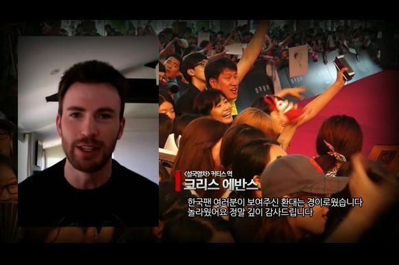 한달 전 한국을 찾았을 당시보다 머리와 수염이 자란 모습이 눈에 띄는 크리스 에반스는 “한국에 다녀온 지 몇 주가 흘렀는데, 벌써 여러분들이 보고 싶습니다. 한국팬들이 보여주신 환대는 경이로웠고, 놀라웠습니다. 정말 깊이 감사 드립니다”고 밝은 얼굴로 한국에 대한 그리움을 밝혔다.