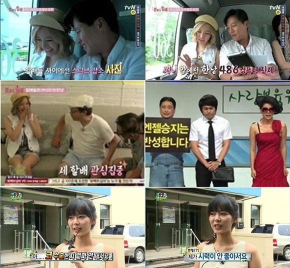 인기 걸그룹 소녀시대의 써니와 개그맨 맹승지가 애교라는 공통적인 무기로 남심을 뒤흔들었다.