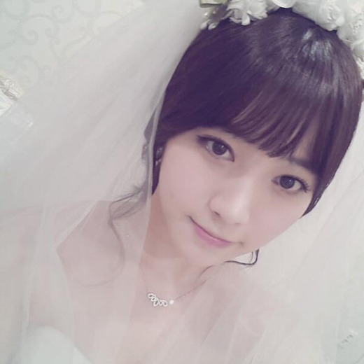 유라는 31일 자신의 트위터에 웨딩드레스를 입은 사진을 올리고 "우와, 저 신부됐어요"라고 적었다.