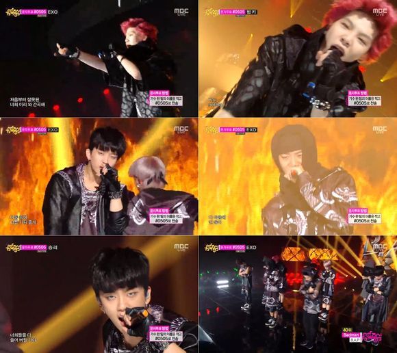검은색 계열의 의상과 볼드한 액세서리로 거친 이미지를 낸 B.A.P 멤버들은 불을 상징하는 무대 영상으로 분위기를 고조시켰다.