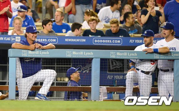 2회말 2사 2루 류현진이 동점 2루타를 치자 매팅리 감독이 함박 웃음을 짓고 있다. / rumi@osen.co.kr