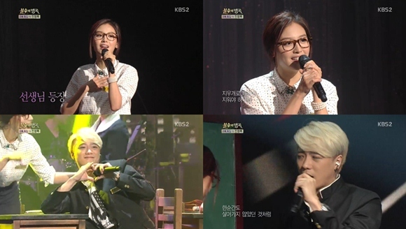 아웃사이더와 재경은 31일 오후 방송된 KBS 2TV 예능프로그램 '불후의 명곡-전설을 노래하다'에서 전영록의 '사랑은 연필로 쓰세요'로 그들만의 스타일로 재해석했다.