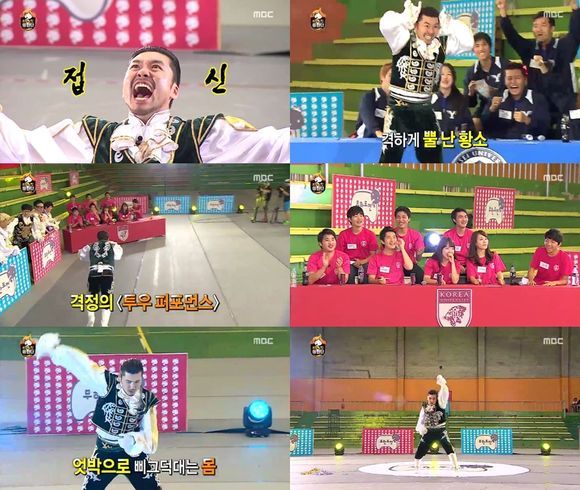 이날 방송에서 '무한도전' 멤버들은 응원단을 결성, 고려대와 연세대학교 응원단을 섭외해 즉석에서 응원 오디션을 진행했다.