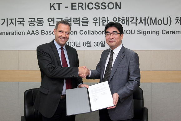 KT(회장 이석채, www.kt.com)가 에릭슨LG(대표이사 마틴 윅토린, www.ericssonlg.co.kr)와 차세대 무선 기지국 장비 연구를 위한 MOU를 30일 KT 종합기술원에서 체결하고 공동 기술 협력에 착수한다.