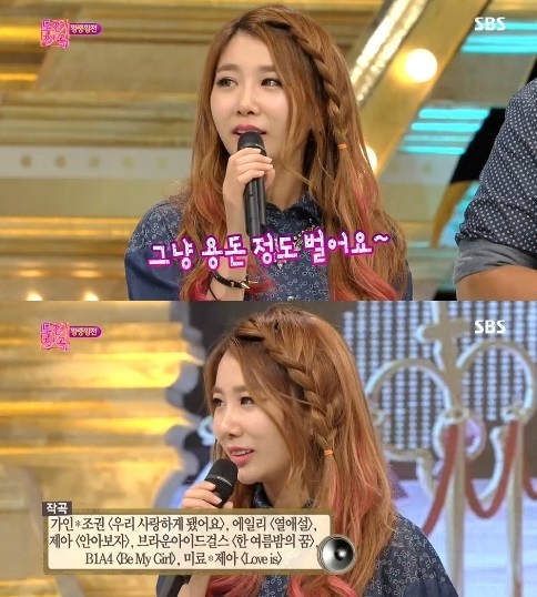 [OSEN=방송연예팀] 가수 제아(브라운아이드걸스)가 자신의 저작권료에 대해 언급했다.
