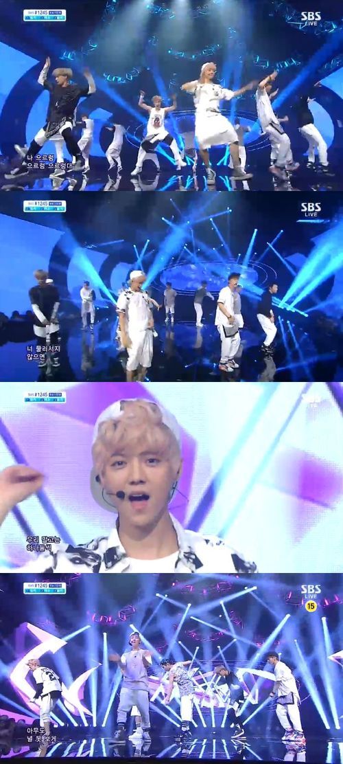 엑소는 1일 오후 3시 30분에 방송된 SBS '인기가요'에 출연해 히트곡 '으르렁'의 화려한 무대를 선보였다.