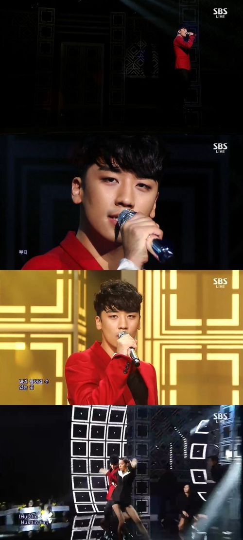그룹 빅뱅의 승리가 빨간색 재킷을 차려입고 섹시함과 감성이 공존하는 무대를 선보였다.