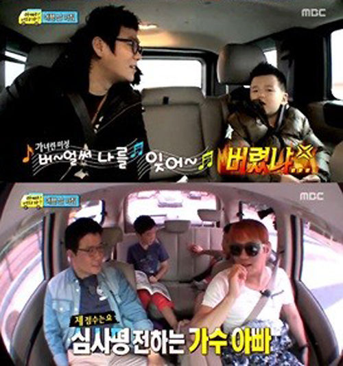 윤후는 1일 방송된 MBC 예능프로그램 ‘일밤-아빠 어디가'에서 승합차를 타고 이동중 성인이 따라 부르기에도 어려운 '그리움만 쌓이네'를 불렀다.