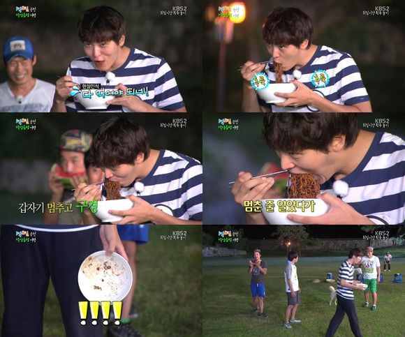 그러나 그는 대단한 먹성으로 짜장라면 2그릇을 비웠고, 주변에 있는 멤버들의 감탄을 자아냈다. 결국 주원은 수면 시간을 3시간 더 확보했다.