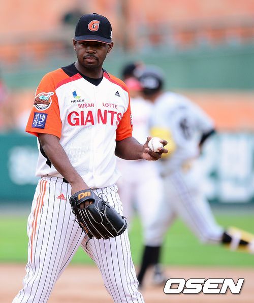 1일 오후 부산 사직야구장에서 열린 롯데 자이언츠와 LG 트윈스의 경기, 4회초 무사에서 롯데 유먼이 LG 정성훈에 솔로포를 허용하고 아쉬워하고 있다.