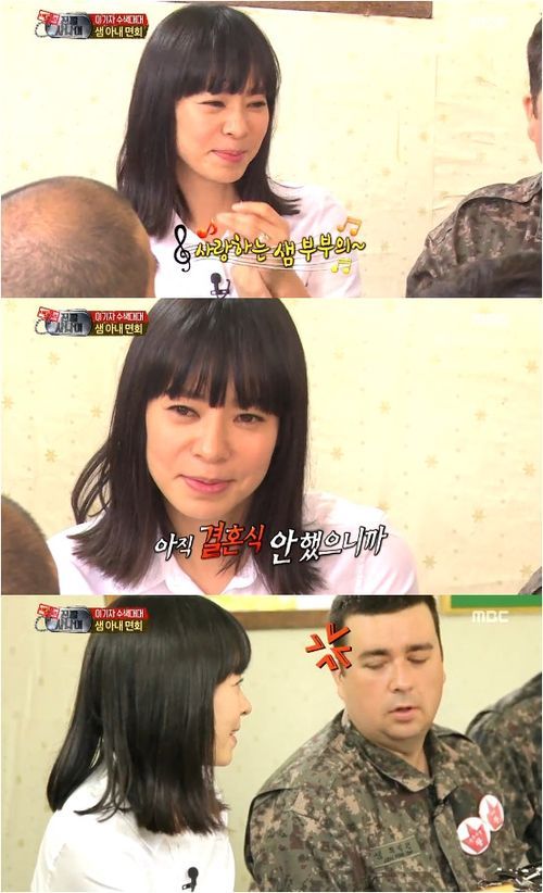 이날 샘 해밍턴은 아내와 헤어질 시간이 되자 눈물을 흘리며 “고맙고 사랑한다”고 뽀뽀를 했다.