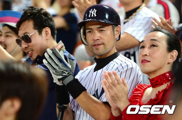 1일 오후 부산 사직야구장에서 열린 롯데 자이언츠와 LG 트윈스의 경기, 이문세 이치로 닮은꼴이 경기장을 찾아 열띤 응원을 선보이고 있다.