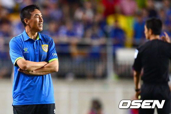 1일 오후 경기 수원월드컵경기장에서 열린 '현대오일뱅크 K리그 클래식 2013' 수원 삼성과 전남 드래곤즈의 경기, 전반 전남 하석주 감독이 경기를 지켜보고 있다.