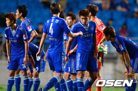 경기종료 후 수원 선수들이 서로를 격려하고 있다. / soul1014@osen.co.kr