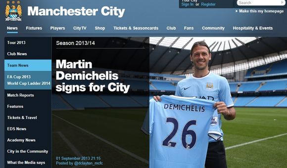 마누엘 폐에그리니 맨시티 감독은 리버 플레이트(아르헨티나)와 말라가(스페인 프리메라리가)에서 사제의 연을 맺었던 데미첼리스를 데려오며 급한 불을 껐다.