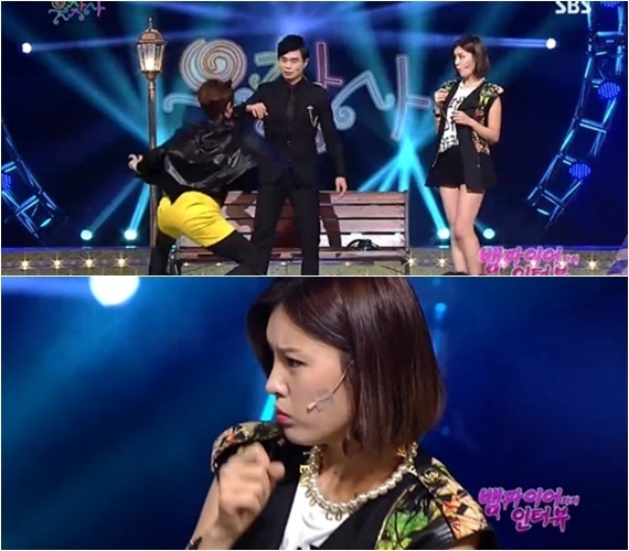 이날 ‘웃찾사’는 박은지의 고정 투입이 이뤄진 날로 그는 이날 새 코너 ‘뱀파이어와의 인터뷰’에 모습을 드러냈다. 특종을 찾아다니는 여 기자가 자신을 뱀파이어라고 주장하는 한 남자를 인터뷰 하는 과정을 담은 이 코너에서 박은지는 여 기자로 분해 새침한 외모와 달리 걸걸한 입담으로 눈도장을 찍었다.