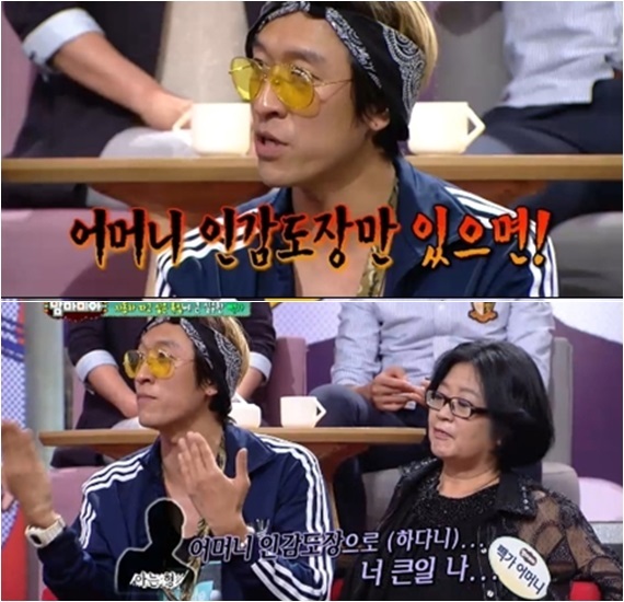빽가는 1일 방송된 KBS 2TV 예능프로그램 '해피선데이-맘마미아'에 어머니와 함께 출연, 21살 때 멋진 자동차를 사고 싶어 한 밤 중 어머니의 인감도장을 훔친 과거 이야기를 들려줬다.