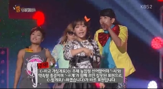 특히 이는 박은영이 하는 "잠깐만요. 보라 언니 ~하고 가실게요"가 요즘 유행어로 떠오른 것에 기인한다. 시청자들과 한글 단체 등으로부터 잘못된 표현이라는 지적을 받자 제작진이 이를 공지하며, 어법상 올바른 표현을 간접적으로 강조했다.
