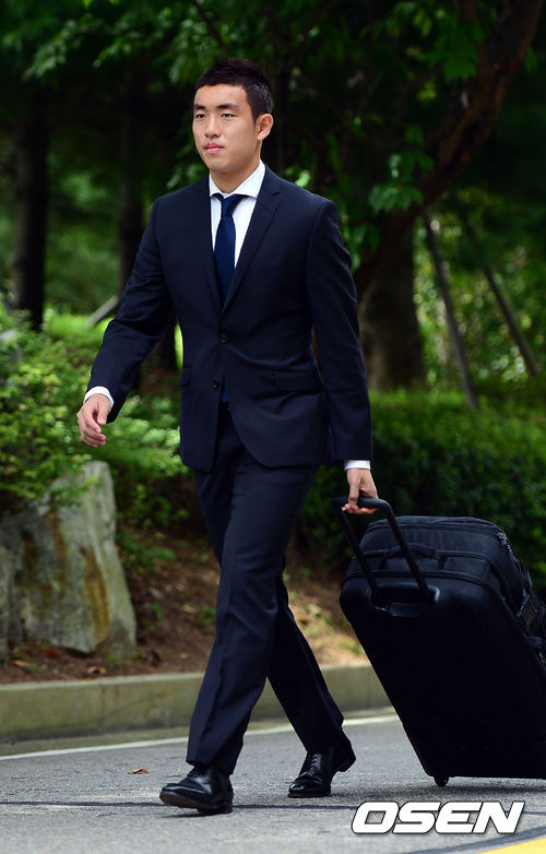 아이티(FIFA랭킹 74위)와 크로아티아(FIFA랭킹 8위)를 상대로 평가전을 치르는 홍명보호 3기 윤석영이 2일 오전 파주 NFC에 입소하고 있다.