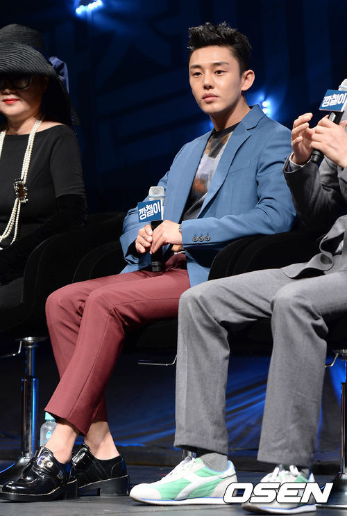 배우 유아인이 취재진의 질문을 듣고 있다.