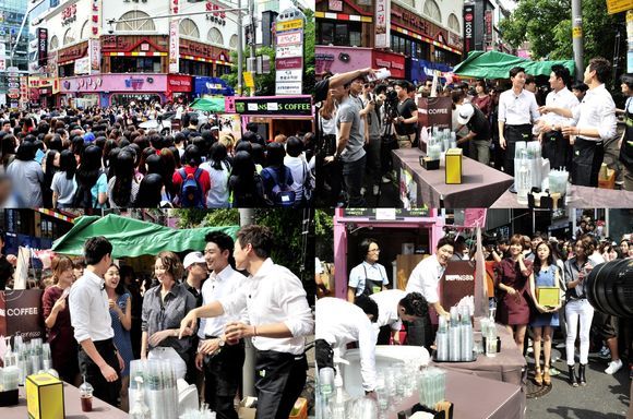 ‘금나와라 뚝딱’ 출여진은 지난 달 31일 강남의 한 사거리에서 시민 1000여명에게 커피를 선물했다.