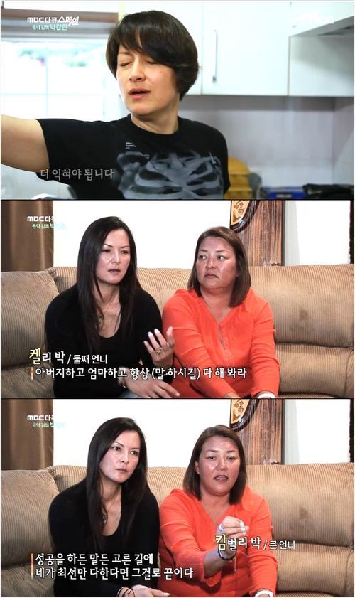 켈리 박은 2일 방송된 MBC 다큐멘터리 ‘MBC 다큐 스페셜’에서 또 다른 자매인 킴벌리 박, 박칼린과 이들의 어머니의 교육 철학을 전했다.