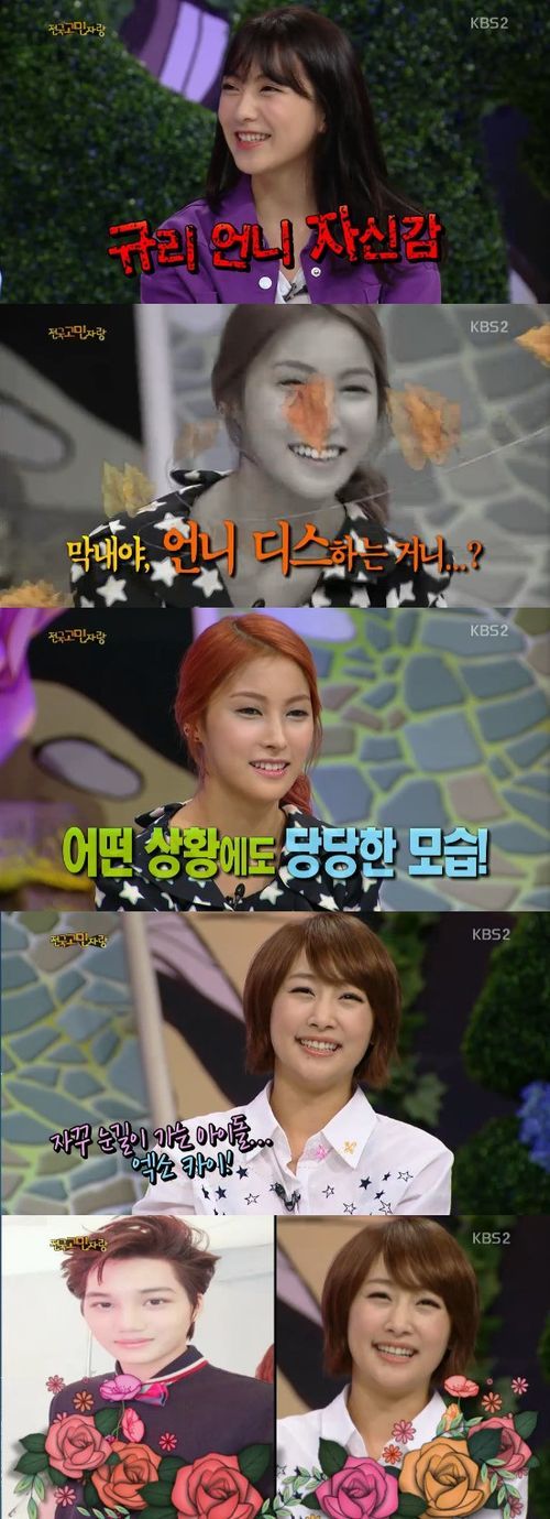 본격적인 사연에 앞서, 강지영은 멤버들의 부러운 점을 묻는 MC들의 질문에 “하라 언니의 작은 얼굴과 마른 몸매가 부럽다. 니콜 언니의 근육과 탄탄한 몸매도 부럽다. 규리 언니는 자신감이 부럽다”고 말해 웃음을 자아냈다.