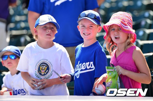 3일 (이하 한국시간) 미국 콜로라도주 덴버 쿠어스 필드에서 2013 메이저리그 콜로라도 로키스와 LA 다저스의 경기가 열릴 예정인 가운데 훈련시간에 다저스 어린이 팬들이 선수들을 기다리고 있다.