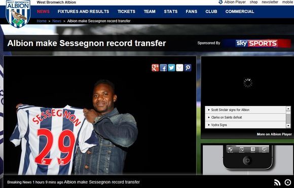 웨스트 브로미치는 3일(한국시간) 공식 홈페이지를 통해 "선덜랜드의 공격형 미드필더 세세뇽을 클럽 레코드에 영입했다"면서 "계약 기간은 3년이다"고 밝혔다. 이적료는 공개되지 않았다.