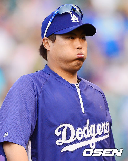 경기를 마치고 다저스 류현진이 큰 숨을 내쉬고 있다. / rumi@osen.co.kr