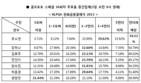 [골프토토] 국내 골프팬들은 'KLPGA 한화금융클래식 2013' 1라운드에서 디펜딩 챔피언 유소연의 언더파 가능성을 가장 높게 내다봤다.