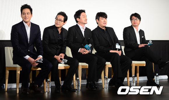 3일 오전 서울 중구 메가박스 동대문에서 열린 영화 '화이 : 괴물을 삼킨 아이' 제작보고회에 박해준, 김성균, 장현성, 조진웅, 김윤석이 참석하고 있다.