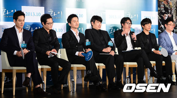 3일 오전 서울 중구 메가박스 동대문에서 열린 영화 '화이 : 괴물을 삼킨 아이' 제작보고회에 박해준, 김성균, 장현성, 조진웅, 김윤석, 여진구가 참석하고 있다.