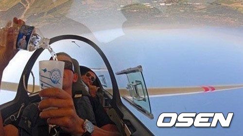 ‘중력 이겨낸 남자’ 사진은 경비행기 조종석에 앉은 한 남성이 거꾸로 선 비행기에서 병에 물을 따르고 있는 모습을 담은 것으로 물이 떨어지지 않고 제대로 컵에 부어지는 모습이 눈길을 끌고 있다.