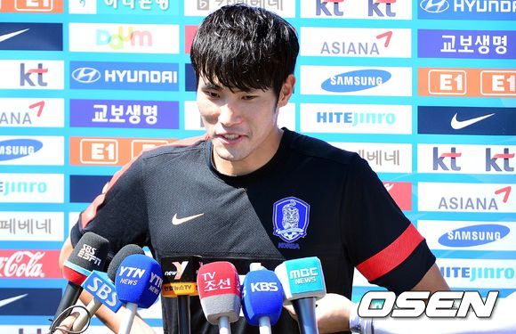 3일 오후 경기도 파주 국가대표 축구 트레이닝 센터(NFC)에서 열린 축구 대표팀 공개훈련에서 한국영이 취재진과 인터뷰 시간을 갖고 있다.