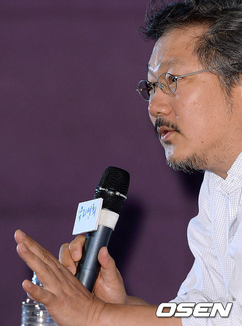 홍상수 감독이 취재진의 질문에 답을 하고 있다.