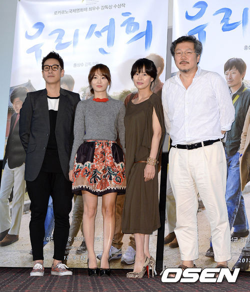 배우 이선균, 정유미, 예지원, 홍상수 감독이 포토타임을 하고 있다.