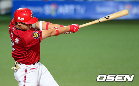 3일 오후 대구구장에서 열린 '2013 한국야쿠르트 세븐 프로야구' 삼성 라이온즈와 KIA 타이거즈의 경기, 2회초 2사 3루 KIA 안치홍이 1타점 적시타를 날리고 있다