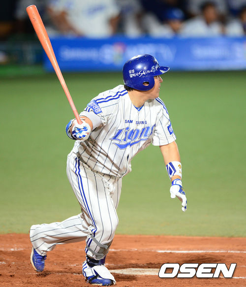 3일 오후 대구구장에서 열린 '2013 한국야쿠르트 세븐 프로야구' 삼성 라이온즈와 KIA 타이거즈의 경기, 6회말 1사 1,3루 삼성 최형우가 희생플라이를 날리고 있다.