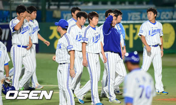 경기종료 후 삼성 선수들이 아쉬워하고 있다. / soul1014@osen.co.kr