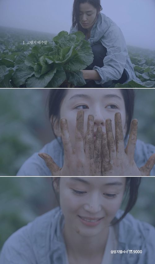 최근 삼성 지펠아삭이 공개한 영상에서 전지현은 좋은 배추를 찾아 간 태백의 한 고랭지 배추밭에서 배추를 열심히 수확하는 모습으로 등장하고 있다.