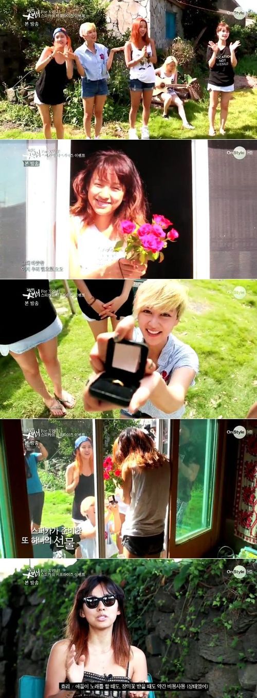 걸그룹 스피카가 자신들의 컴백에 정성을 쏟아준 가수 이효리를 위해 어쿠스틱 기타 연주를 곁들인 깜짝 라이브 노래와 반지를 선물하는 이벤트를 펼쳤다.