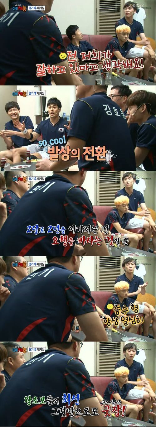 3일 오후 방송된 KBS2 ‘우리동네 예체능‘에서는 전라남도 화순팀과 배드민턴 대결을 펼친 예체능팀이 3대 0으로 완패하는 모습이 그려졌다. 이에 대기실에 옹기종기 모인 멤버들은 패인을 분석하며 침울해했다.