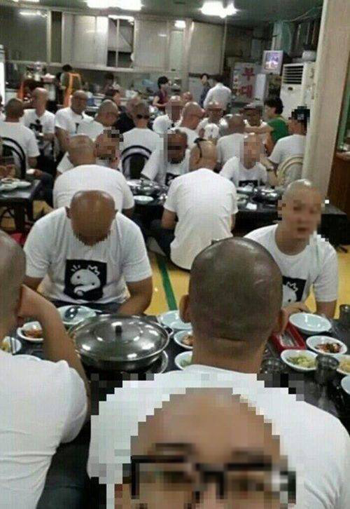 지난 3일 인터넷 커뮤니티에는 ‘무한도전’ 출연자로 보이는 민머리 남성들이 즐비한 사진이 올라왔다. '무한도전' 로고가 그려진 티셔츠를 입고 한 식당에서 식사를 하고 있는 수십 명의 시민들의 모습이 담겨 있다.
